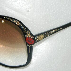 Issues: Overall these glasses are in very good condition structurally as there are no issues with the arms attachment to the frames as they are attached with a high quality metal hinge. Cosmetically the glasses beautifully designed but do have some very, very mild issues that I must disclose that are not visible with the naked eye; but there are some crystals and gold applique studs missing on these glasses. When they are on your face there but nothing that makes these glasses look thrashed or will be easily noticeable when worn by others.
