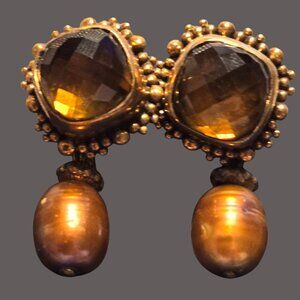 Stephen Dweck Pierced, Drop, Citrine/cultured Pearl 925 Bronze earrings