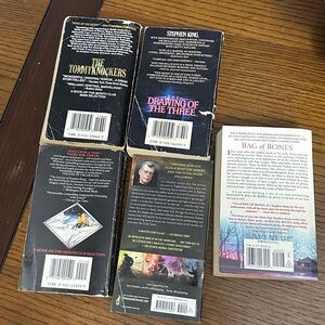 Set of five Stephen King paperback books. Includes 'The Eyes of the Dragon', 'The Tommyknockers', 'The Drawing of the Three', 'The Gunslinger', and 'Bag of Bones'.
