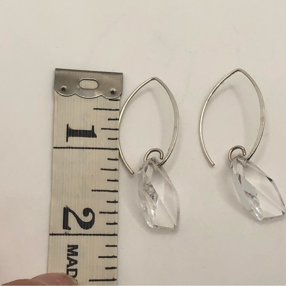 Sterling Crystal Drop Curved Wire Post Earrings Facet Cut 2”