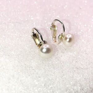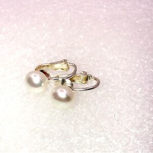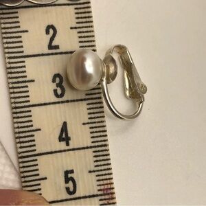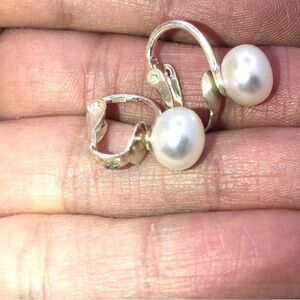 Sterling & Freshwater Pearl Clip On Earrings 8mm - 9mm Pearls / .7” Length
