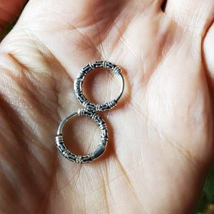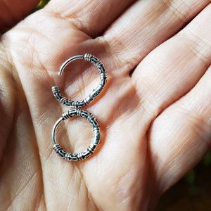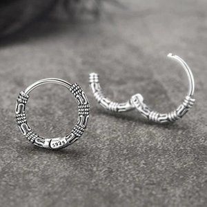 Sterling Hoop Earrings Pattern Earring For Women / Men . S925 Sterling Silver pl