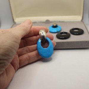 Nice earring set. Signed MWS 925 on earring backs. Three pairs of semi percious stones to wear.