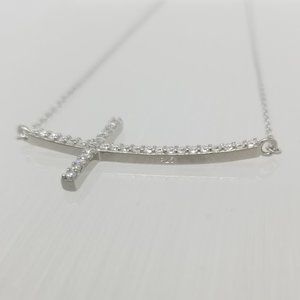 Sterling SIlver CZ Cross Shape Charm Neckl…