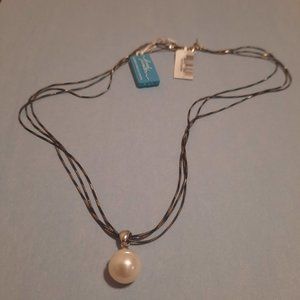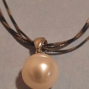 Sterling Silver 11-12 mm white round pearl drop on triple chain 18 in