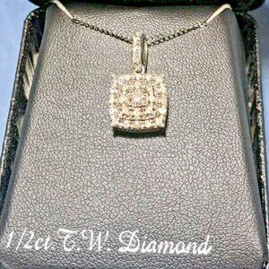 Sterling Silver 1/2 ct. T.W. Diamond Square Pendant Necklace 18"in