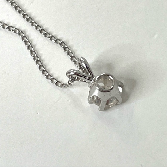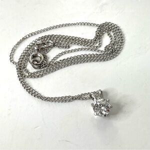 Sterling Silver 18” Chain and Solitaire Crystal Pendant Signed