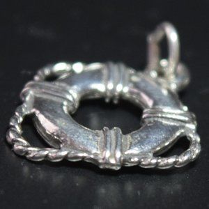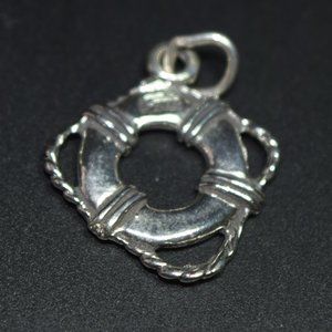 Sterling silver 3D Life ring buoy with rope charm. Stamped STER.