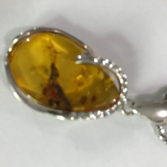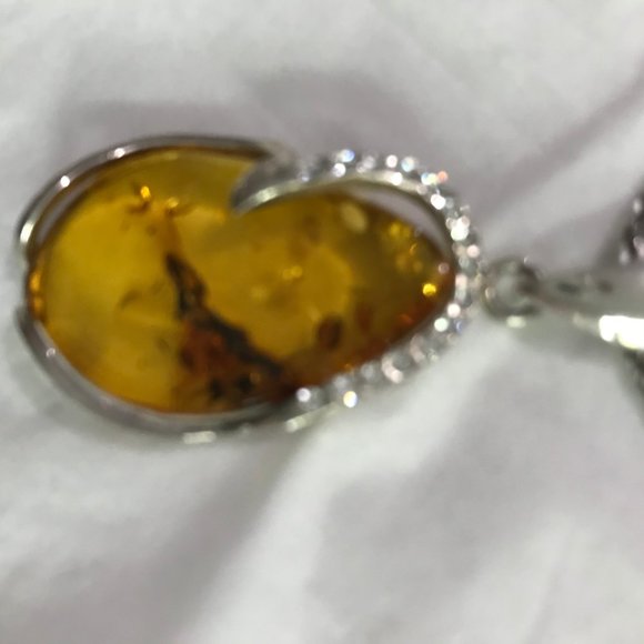 Sterling Silver 925 Baltic Amber Pendant with Crystal Trim