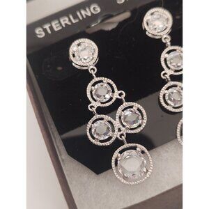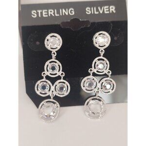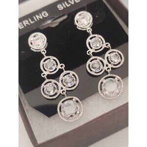 Sterling Silver 925 & Cubic Zirconia Statement Dangle Stud Earrings New in Box 1 3/4" long