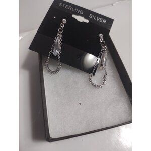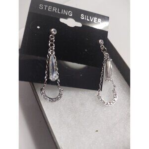 Sterling Silver 925 & Cubic Zirconia Stud Dangle Earrings New in Box