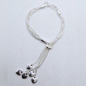 Sterling Silver 925 Multi Strand Bracelet w/ Heart Charms
