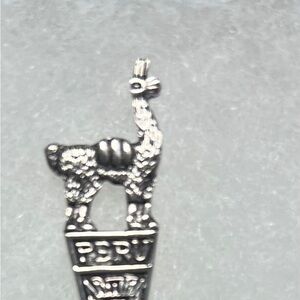 Beautiful collectible spoon crafted in fine .925 sterling silver, featuring a detailed llama and the Peru emblem on the handle.