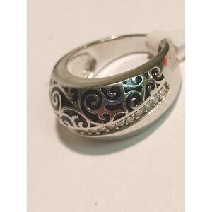 Sterling Silver Women's Size 6 Ring Cubic Zirconia with scrolled design and enamel . BRAND NEW