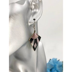 Lovely pair of Sterling Silver and Pink and White Mother of Pearl and Black Onyx Dangle Earrings. Marked Mexico on back. Have hook style attachments. In good condition with some patina on back. This can easily be removed with some polishing if you wish.