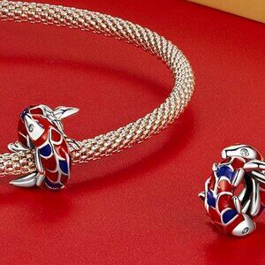 Sterling Silver Blue Red Enamel Lucky Carp Septal Fish Bead Charm