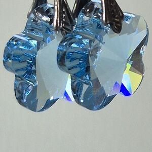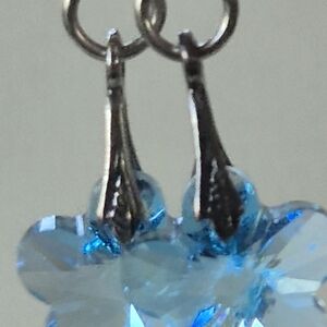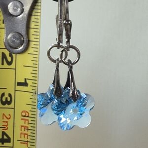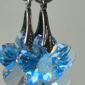 delicate sterlingband swarovski crystal earrings. Add a touch of elegance with these stunning blue crystal flower earrings. Perfect for any occasion.