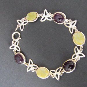 Very nice sterling silver link bracelet with Amethyst and Jasper stones. The stone links are intersped with Celtic knot links.
