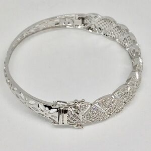 Sterling Silver CZ Crystal Hinged Bangle Bracelet