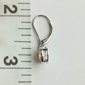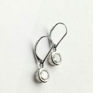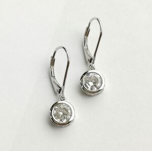 Sterling silver CZ dangle drop earrings with lever backs. The design features a simple bezel setting for the main stone. The lever backs provide a secure hold. Stamped 925 (see picture 3). The overall length is just under 1 inch. #sterlingsilver #czeaarrings #dangleearrings