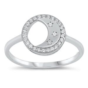 Sterling Silver CZ Ring – Crescent Moon Design (Size 8)