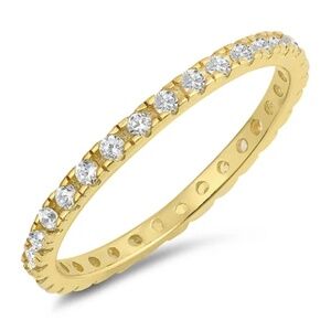 Sterling Silver CZ Ring – Gold Eternity Band (Size 8)