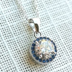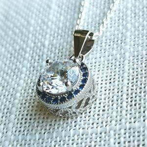 Sterling Silver CZ sapphire gemstone pendant necklace NEW