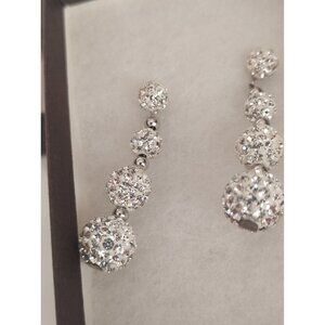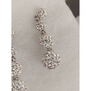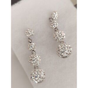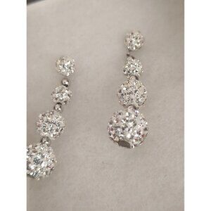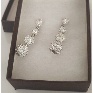 Sterling Silver 925 & Cubic Zirconia Statement Dangle Stud 4 Ball New in Box 1 3/4" long