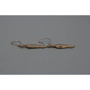 Sterling Silver Drop Earrings Carved Fish on Hooks 6.3 g Sterling 925 2"