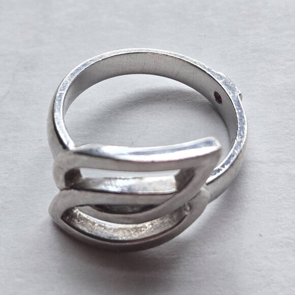 Sterling Silver ELLE 925 Open Leaf Ring Ruby Inlay