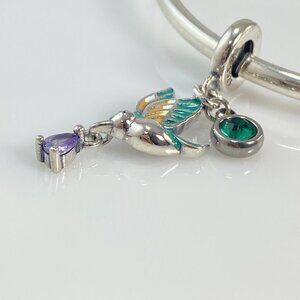 Sterling Silver Enamel Bird with Amethyst CZ Drop & Birthstone Dangle Ch…