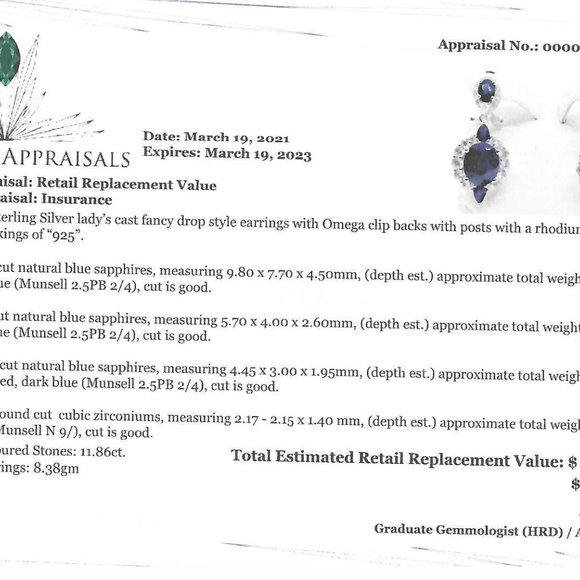 Sterling Silver Fancy Drop Style Earrings with Natural Blue Sapphire (7.54ct)