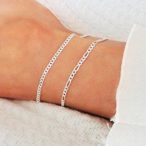 Sterling Silver Figaro Anklet Real Silver Layering Ankle Bracelet 925 Italy