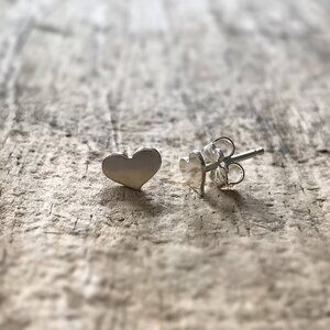 Sterling Silver Flat Heart Stud Earrings for Valentine's Day Gift Idea
