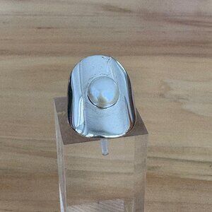 Sterling Silver & Freshwater White Pearl Sheild Style Ring Size 5 3/4