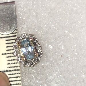 Gold plated sterling silver stud earrings - oval shaped sky blue topaz centre stones with 2 Diamond accents on sides of each topaz. The way the setting is it looks like the topaz are surrounded by diamonds however there is just the two on each earring.