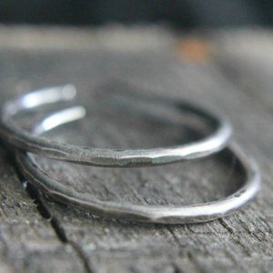 Sterling silver medium sized hammered hoops. Beautifully rustic with a hammered texture and light oxidized finish.