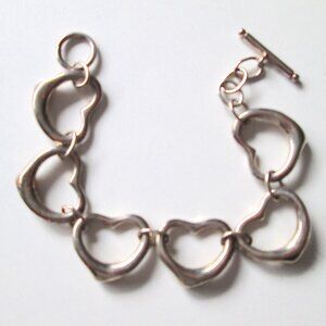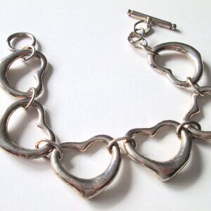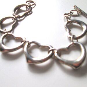 Vintage Sterling Silver Heart Link Toggle Bracelet Stamped 925 Bold Chunky Vintage