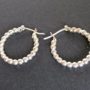 Lovely hoops, made of sterling silver. These are quite sturdy, wear very well.