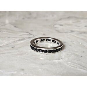 Elevate your style with this exquisite Sterling Silver Infinity Band featuring 24 stunning Black Sapphires. The sleek design and high-quality 925 metal purity make this ring a timeless addition to any jewellery collection. With a ring size of 11, this band exudes elegance and sophistication.