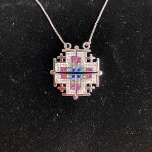 Sterling Silver Jerusalem Cross with Cubic Zirconia Two-Way Magnetic Pendant