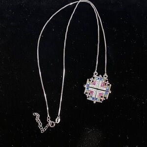 Enhance your jewelry collection with this unique, two-way magnetic silver pink & clear crystal pendant