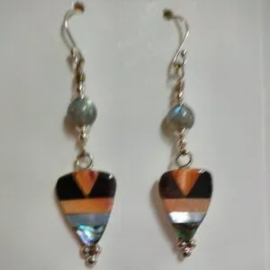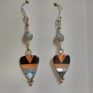 Sterling Silver, Labradorite and Shell Dangle Earrings, Handcrafted