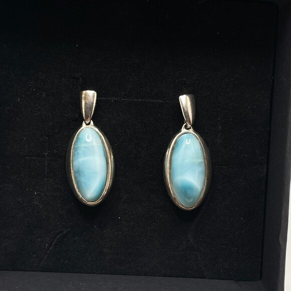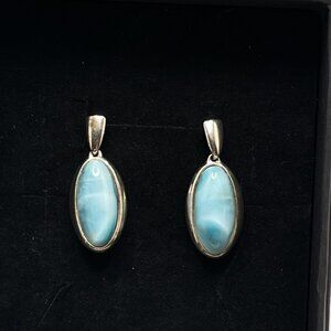 Beautiful Larimar Sterling Silver Earrings. Simple and solid design that will last for years to come.