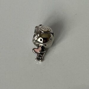 💜 Sterling Silver Little Boy with Pink Enamel Heart Charm