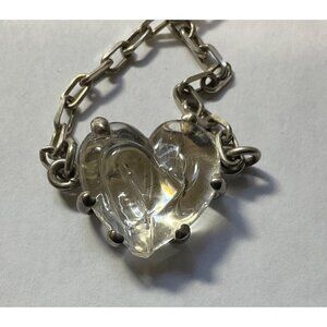 Sterling Silver Lucite Bubble Heart Necklace Pendant Prong Claw Setting 19.5”
