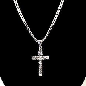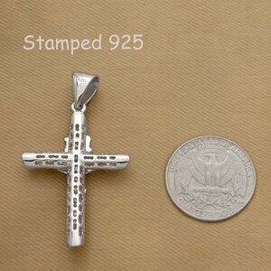 This striking crucifix pendant, meticulously crafted from genuine sterling silver (stamped 925), is more than mere metal—