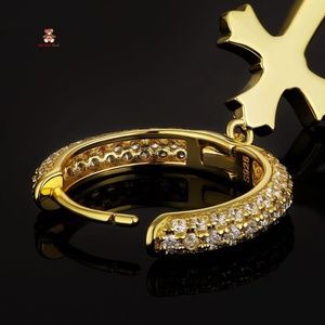 Sterling Silver Mens Cross 18k Gold Vermeil Hoops Earrings.
