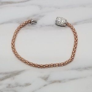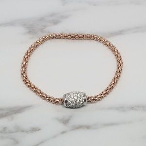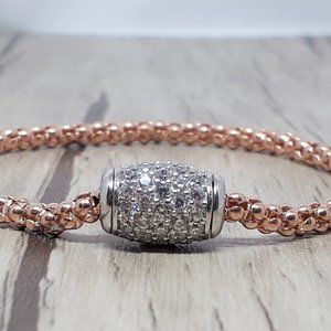 925 Sterling Silver Mesh Bracelet Rose Plated w/ Cubic Zirconia -CZ