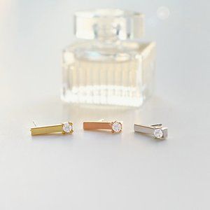 Sterling Silver Minimal Bar CZ Earrings Studs her